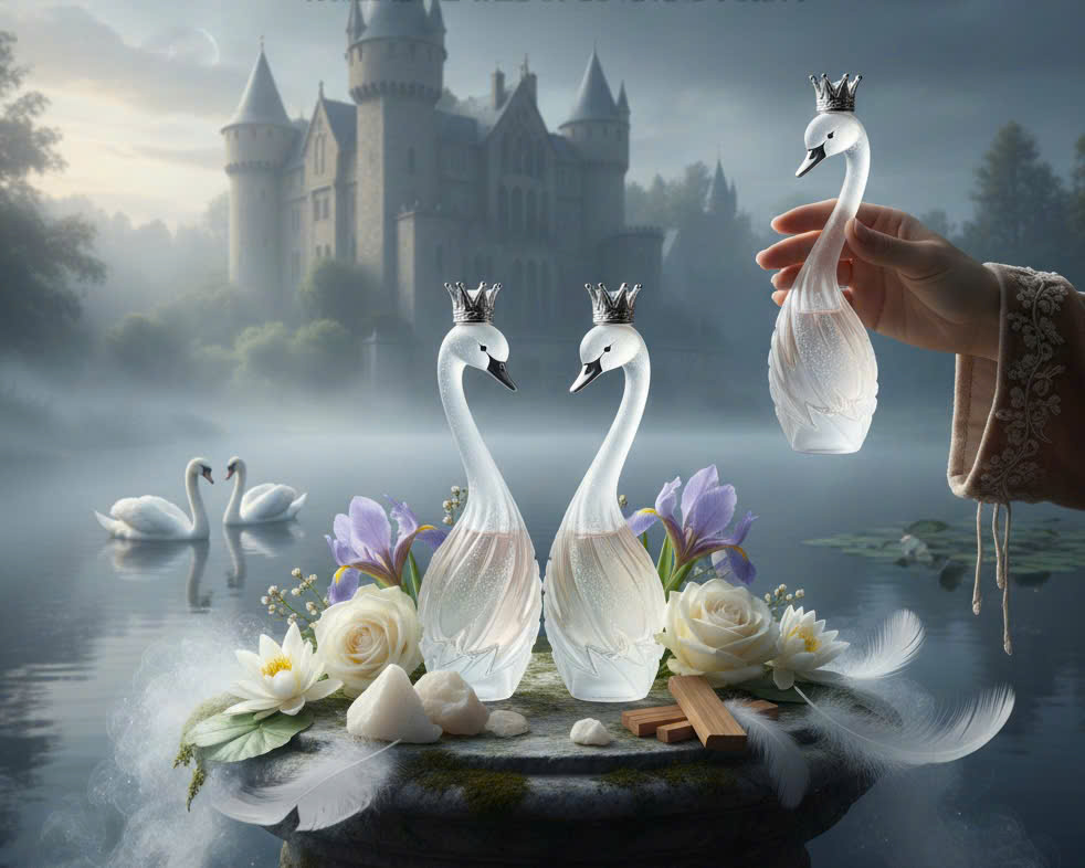 Experience “The Swan’s Vow,” a perfume collection inspired by medieval courtly love and the grace of the swan. Discover notes of white rose, iris, and musk.